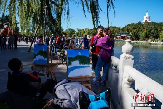 资料图:10月6日,北京迎来大风天气。图为学生在北海公园写生。中新社记者 崔楠 摄