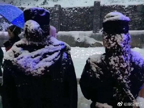 这是两名女民警在风雪中坚守岗位的背影。没有人知道她们是谁,但一定有人知道她们是为了谁!