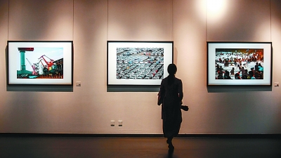 9月23日,首届“一带一路”国际海洋城市文化摄影周在大连开幕,图为参观者欣赏展出的摄影作品。新华社发