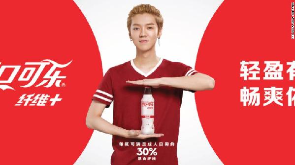 在过去的六个月里,可口可乐在中国推出了30多个新的饮料品牌。图为苹果纤维饮料的广告。