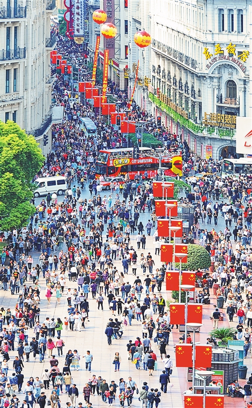 南京路是上海的一大名片。图为南京路步行街的热闹景象。 (资料图片)
