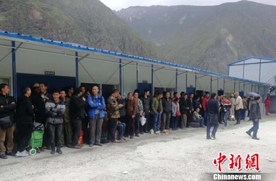 金沙江沿线工地等待转移的人员。 甘孜宣 摄