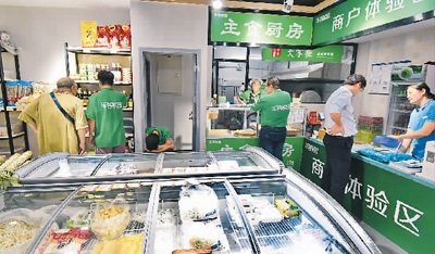 顾客在北京某新零售社区便民店体验、选购。新华社记者 李 欣摄