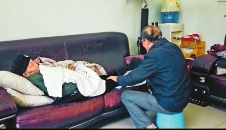 “妈妈,你把脚伸进来,看看水还烫不?”吴国元用自己在山上采的中药材熬成汤水,来给妈妈泡脚,“因为生病的缘故,妈妈的腿脚根本使不上力,所以每天都要用筋骨草给她泡泡脚,活络活络筋骨。”泡完脚后,他又把老母亲扶到沙发上躺着,继续给她按摩。