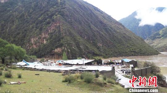 图为10月13日,西藏自治区昌都市金沙江堰塞湖下游贡觉县克日乡莫扎村部分房屋、农田被淹,威胁区域所有民众均已安全撤离至安置点,未造成人员伤亡。 贡觉县宣传部 摄