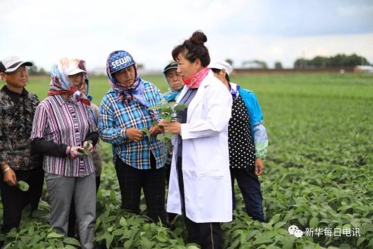 李艳华为农民讲解大豆知识(2018年6月29日)。杨喆 摄