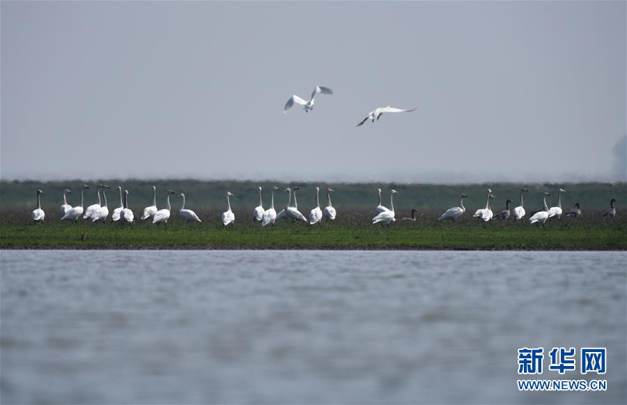 一群小天鹅在东洞庭湖国家级自然保护区内聚集(2月26日摄)。近年来,湖南自上而下发动省、市、县、乡、村五级干部打“洞庭湖生态环境保卫战”。 新华社记者 李尕 摄