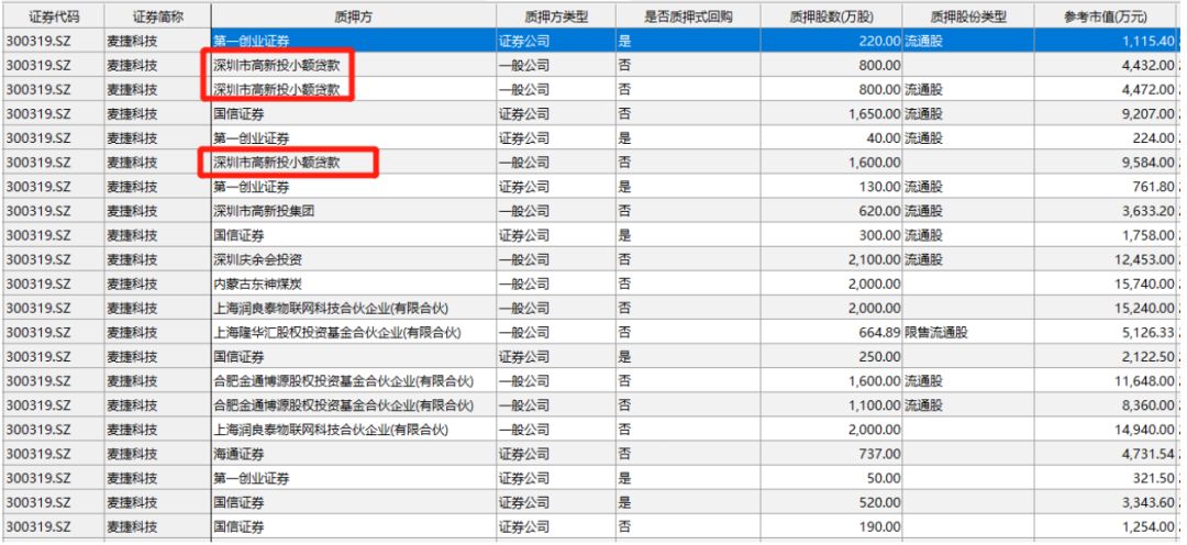 从具体日期来看,2018年8月28日,深圳高新投小额贷款接受泰捷科技大股东1600万股质押。其后,9月7日和9月25日,深圳高新投小额贷款再接受大股东两笔800万股股权质押。