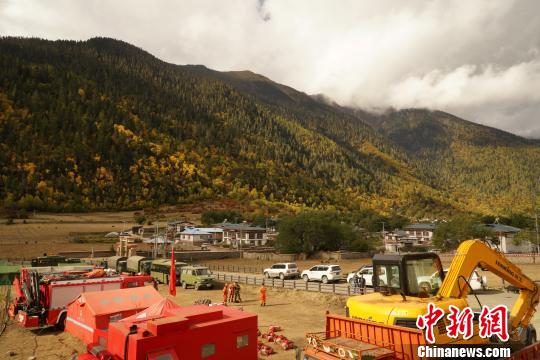 西藏消防救援力量在堰塞湖上游的达林村驻扎。 江飞波 摄