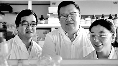 钟扬(中)在复旦大学的实验室工作。新华社发