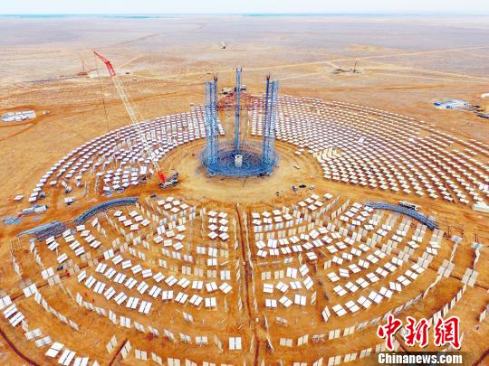 近年,玉门市大力发展绿色新能源,继风电之后,光热发电产业成为了玉门的新名片。图为玉门鑫能5万千瓦光热项目建设工地。(资料图) 杨阳 摄