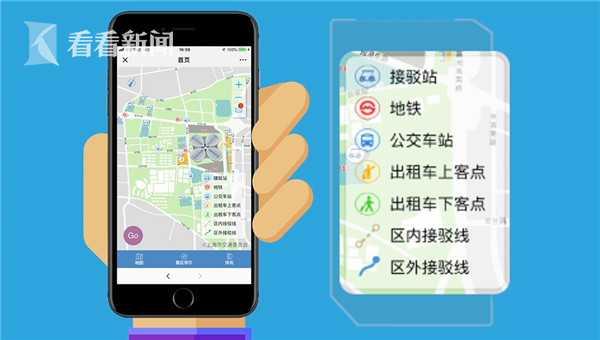 观众只需打开“进博会交通”App,点击主页上的GO按钮,选择到达或离开场馆的起点与终点,一条“量身定制”的抵离馆路线便闪烁在手机屏幕上。