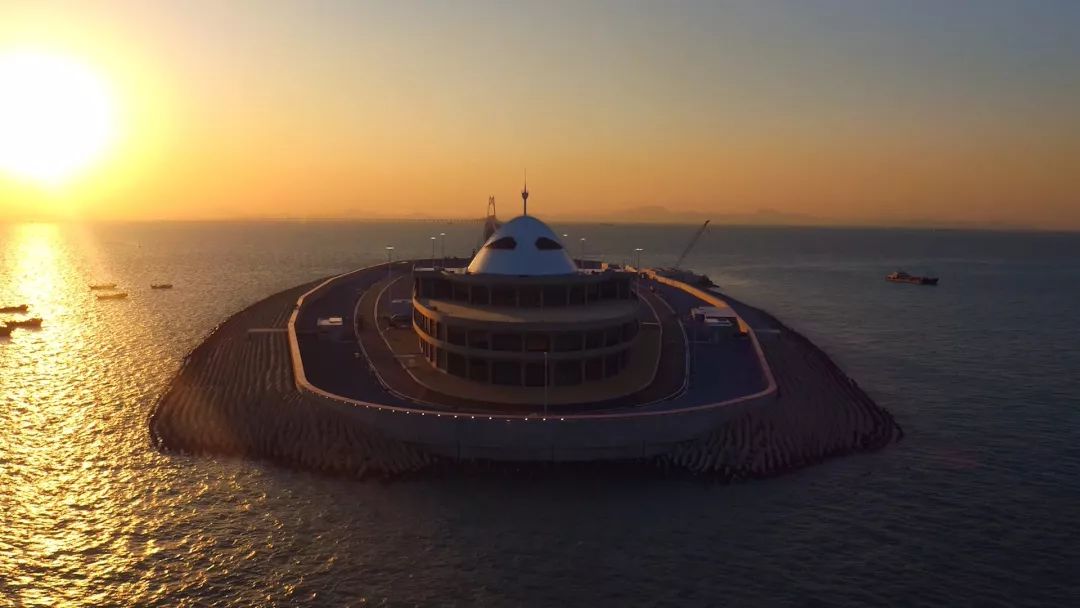 珠澳口岸人工岛是港珠澳大桥主体工程与珠海澳门两地的衔接中心,两地过关口岸都设置在岛上,实现“城市中转”。