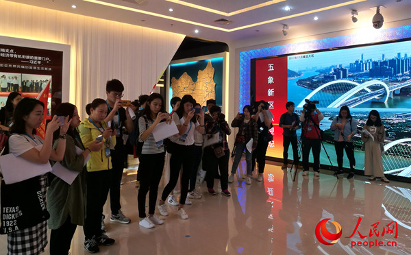 工作人员介绍中国—东盟信息港南宁核心基地情况