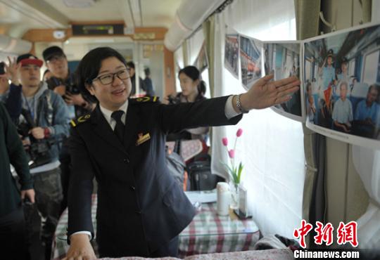 指导车长陈靓通过图片讲解T8次列车60年发展变化。 刘忠俊 摄