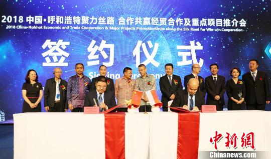 图为呼和浩特市企业与印尼企业签订合作协议。 林永传 摄