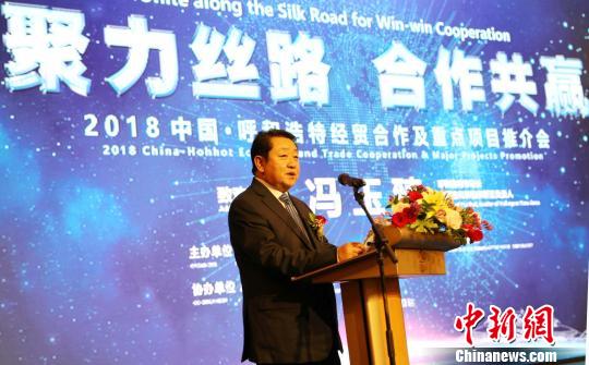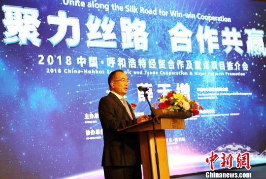 图为呼和浩特市市长冯玉臻在推介会上致辞。 林永传 摄