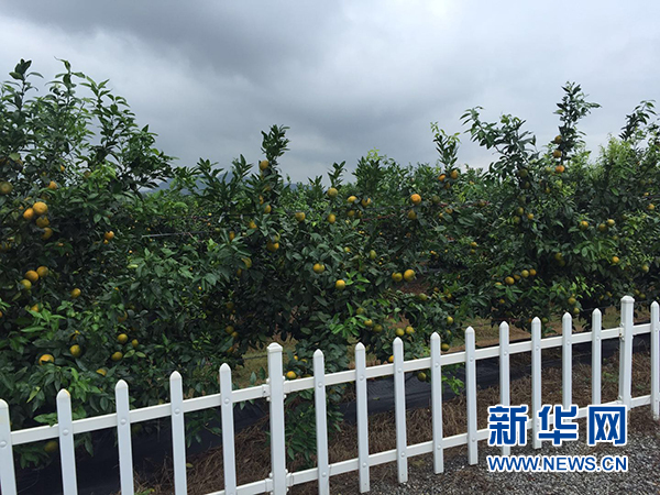 图为广西来宾海升现代柑橘产业园,园区约种植3500亩柑橘树 新华网 王莹 摄