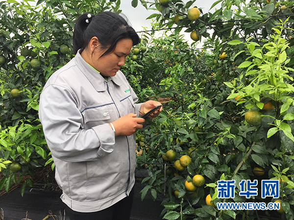 图为柑橘示范园内随处可见的智慧云系统 新华网 王莹 摄