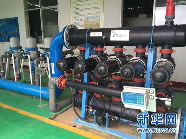 图为柑橘示范园内引进的成套智能化可自动学习升级的水肥一体化滴灌系统 新华网 王莹 摄