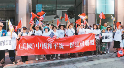 2018年8月,针对蔡英文“过境”美国洛杉矶,南加州众多侨团联合前往蔡英文住宿的宾馆门前举行抗议示威活动。(资料图片)