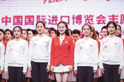 10月20日,首届进口博览会志愿者上岗宣誓仪式上,志愿者两款服装发布,志愿者主题歌《年轻的力量》也同步首发。