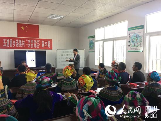 洛果村位于四川省凉山彝族自治州普格县五道箐乡,是一个全彝族村。在全村精准扶贫建档贫困户67户242人中,文盲和半文盲人口132人,占55%。农民网校采取集中培训、定点教学、上门服务、公益辅导等方式,对村民进行手机、电脑、网络等基础知识培训,提供网络营销、互联网+金融、网络宣讲等服务。农民网校的开办,让贫困农户熟练掌握微信、QQ聊天、网上阅读、网上购物等基础性用网技能,并能进行种养殖、就业等网络知识查询。