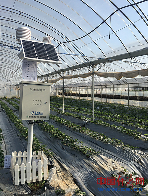 图为五道箐农业基地的气象监测站与大棚草莓。经济日报-中国经济网记者 梁木摄