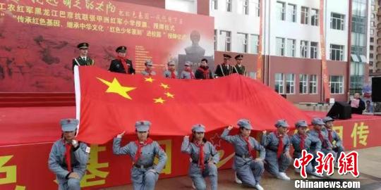 中新网哈尔滨10月27日电 (曹春雷 周铁成王妮娜)27日,中国工农红军黑龙江巴彦抗联张甲洲红军小学(以下简称“巴彦抗联张甲洲红军小学”)授旗、授牌仪式在哈尔滨巴彦县举行。