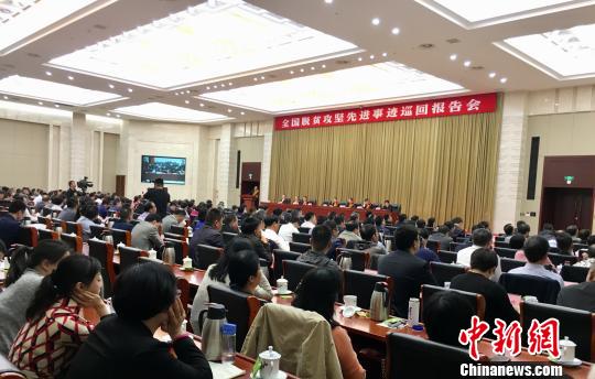 10月27日下午,国务院扶贫办组织的全国脱贫攻坚先进事迹巡回报告会在江西南昌举行。 李韵涵 摄