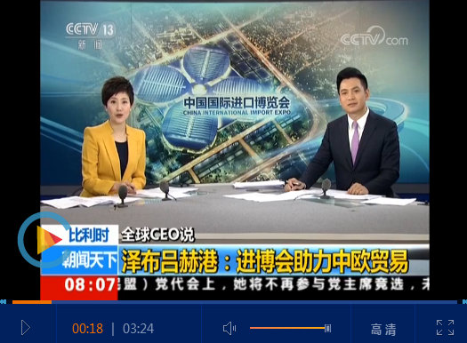 比利时 泽布吕赫港务局首席执行官 尤阿希姆·孔智:对于泽布吕赫港来说,中国十分重要。中欧贸易历史悠久,举办进博会是一个非常好的倡议,因为此次中国国际进口博览会是专门针对进口的新型博览会,我们想参与其中,向大家展示通过我们港口进行的中欧贸易往来,向大家展示我们最好的设施情况,能够提供的平台以及在物流和集装箱运输方面的情况。