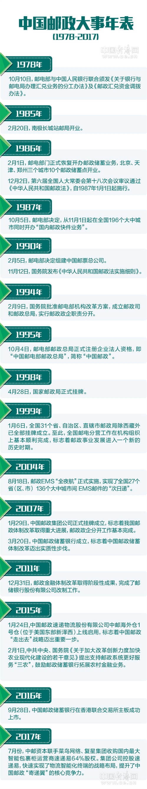 自1896年至今,中国邮政事业已走过120多年的风雨历程。在这漫漫征途中,中国邮政集团公司始终紧扣新发展理念,通过改革创新实现转型升级,并发展成为业务范围覆盖传统邮政、金融、包裹快递、电子商务等领域的现代化企业集团。