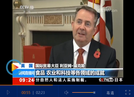 央视网消息:作为首届中国国际进口博览会的主宾国之一,英国对进博会高度重视,将派出包括王室成员、政府官员和企业领袖组成的高级别代表团。英国国际贸易大臣福克斯接受央视记者专访时表示,进博会将为中英关系“黄金时代”带来新的机遇。