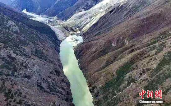 图为11月4日上午,航拍金沙江堰塞体情况。昌都市政府应急办 供图