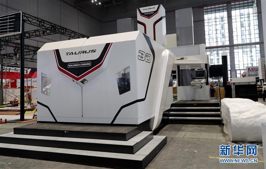 10月30日,来自德国的进博会最大展品——“金牛座龙门铣”在进行安装调试。新华社记者 方喆 摄