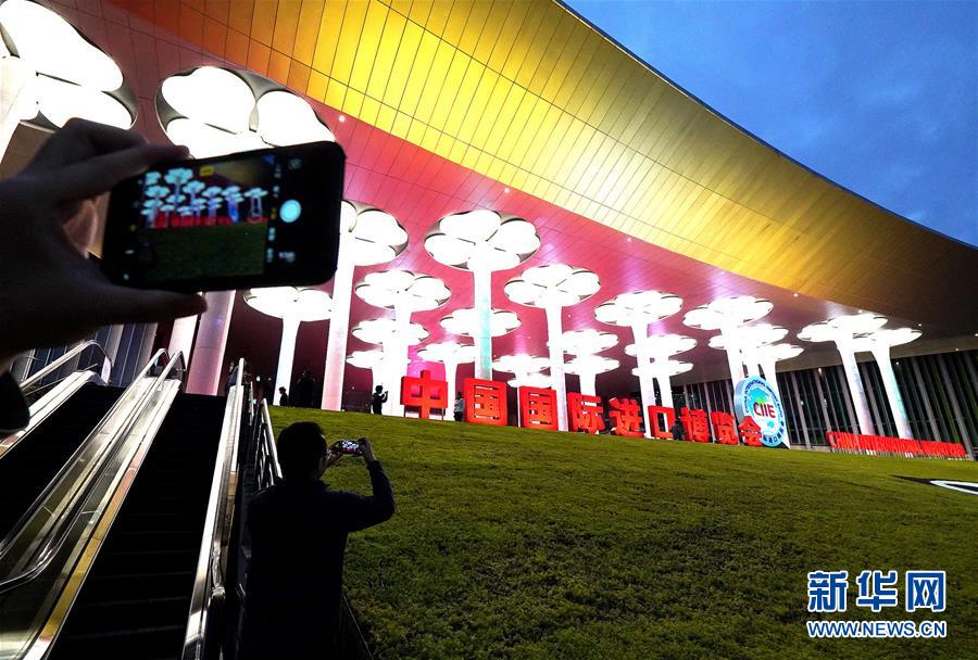 11月4日,人们在拍摄国家会展中心(上海)场馆夜景。新华社记者 陈飞 摄