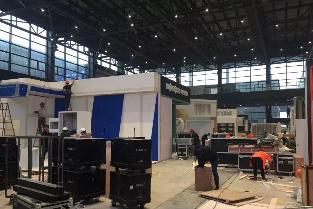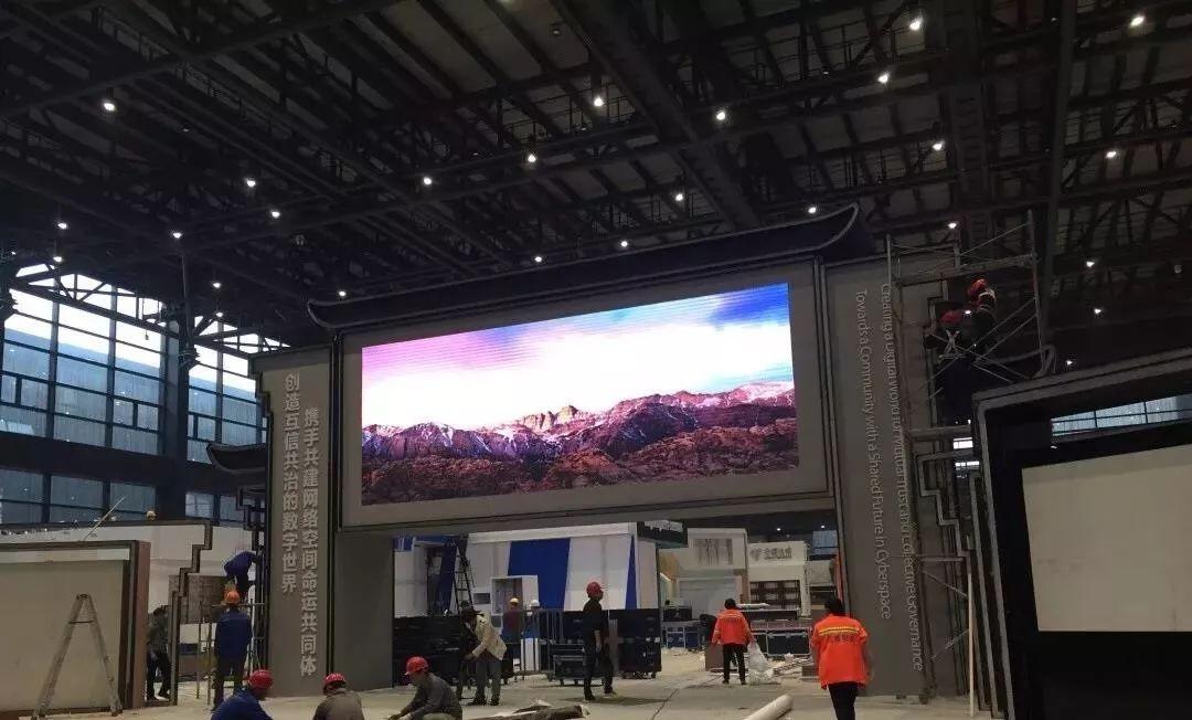 在第五届世界互联网大会主会场门外,阿里巴巴的工作人员正在紧张搭建中。