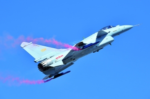 八一飞行表演队连续五年参加航展,杜文龙称,以往表演队出场动作比较经典,单机、高速、垂直跃升。今年是三机同时起飞,短距离起飞之后大角度向右滚转,这个动作很惊险。此后马上接的是单机垂直跃升,开场上给人耳目一新的感觉。另外,此次围绕核心区域表演的动作更多,把中间区域当成重点,动作设计更加合理,表演效果更加精彩。