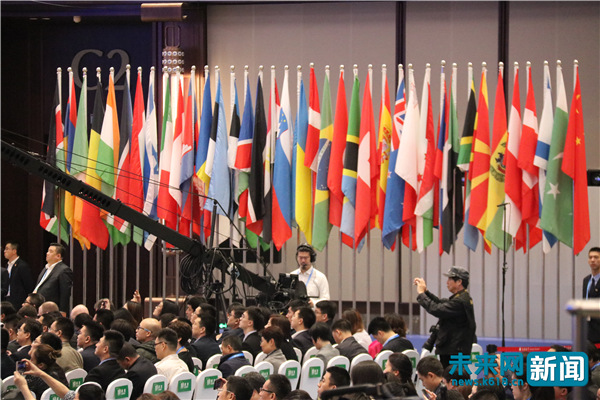 第五届世界互联网大会会场上万国旗飘扬,世界各国宾客再次聚首。未来网记者 巩帅 摄