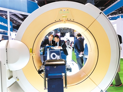 美敦力工作人员向采购商介绍其O型臂术中影像系统。本报记者 邱海峰摄