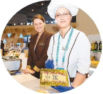 在进博会食品及农产品展区,瑞士甜点师为观众定制个性化巧克力。新华社记者 刘大伟摄