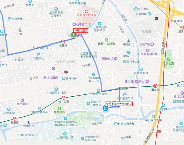 5、漕河泾线:全季上海光大柳州路店—神旺大酒店—国家会展中心