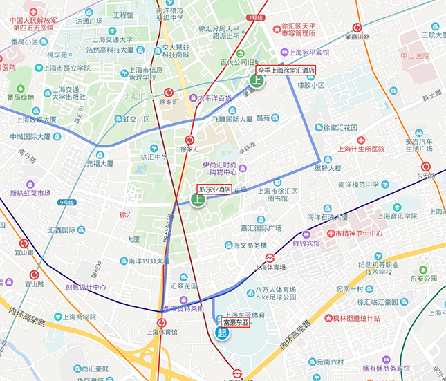 6、徐家汇线:上海富豪东亚酒店—新东亚酒店—全季上海徐家汇酒店—国家会展中心