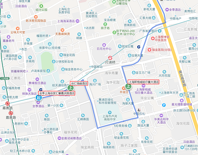 7、肇嘉浜线:全季上海徐家汇肇嘉浜路酒店—徐汇瑞峰酒店—上海斯格威铂尔曼大酒店—国家会展中心