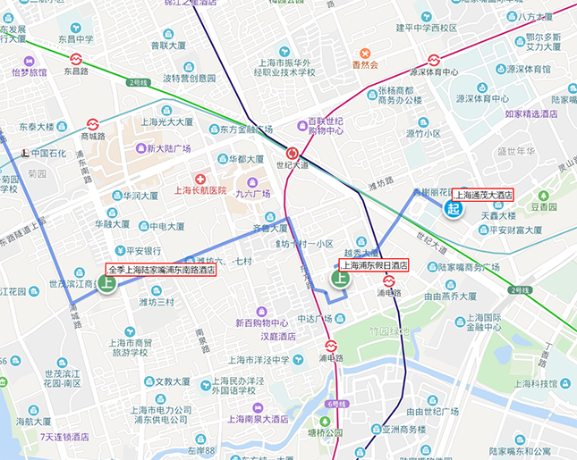 8、浦东线:上海通茂大酒店—上海浦东假日酒店—全季上海陆家嘴浦东南路酒店—国家会展中心