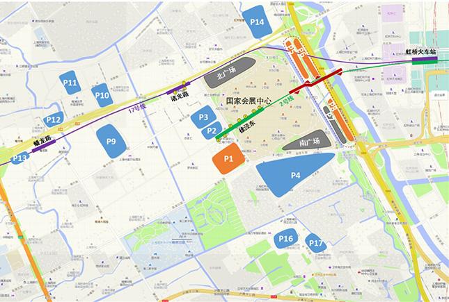 进博会期间,国家会展中心周边提供16处停车场,主要用于进口博览会停车场、轨道交通站点接驳车辆、以及酒店穿梭等专线巴士、出租蓄车、公交应急等车辆的停放。