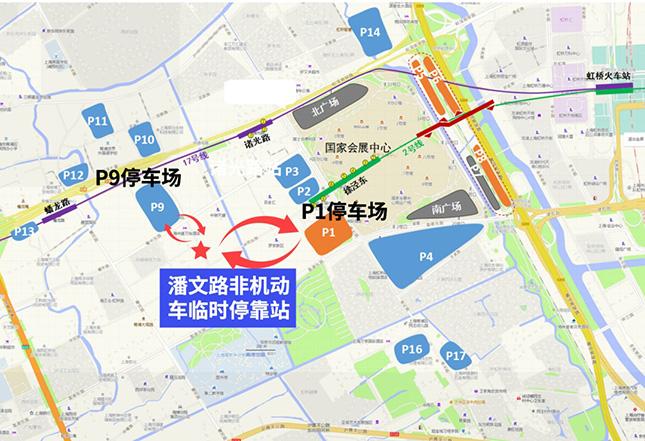 上下客点:P9停车场、潘文路非机动车临时停靠站、P1停车场