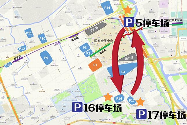 观众乘大巴到达停车场后,可通过停车场接驳线抵达国家会展中心。