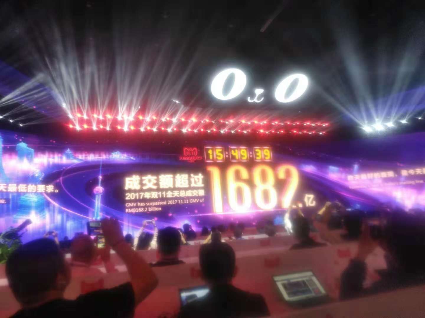 中工网11月11日电(记者车辉)2018年天猫双11再创历史新高,今天15点49分39秒,成交总额突破1682亿,轻松超越去年双11全天的成交总额,仅用时15小时49分39秒,创造了双11十年来的又一成交纪录。在短短15小时中,滚动的数字大屏见证了一个又一个新的巅峰: