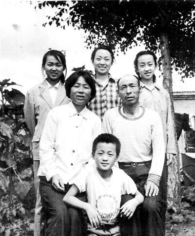 1979年,周保证一家在大庆油田的“干打垒”前合影。 (受访者供图)